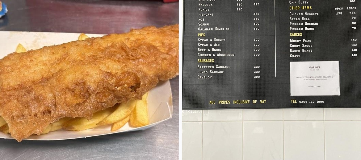 Savor the best fish and chips in Hampton at Marini's Fish & Chips! Enjoy deliciously crispy battered haddock, flavorful sausages, and mouthwatering curry takeaways at affordable prices. Visit us at 115 Station Rd or call +44 20 8127 1880 for a satisfying supper experience!
