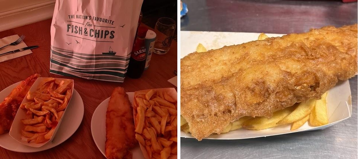 Don't miss the perfectly fried haddock and the delicious battered sausages. Their curry sauce is a local favorite too!